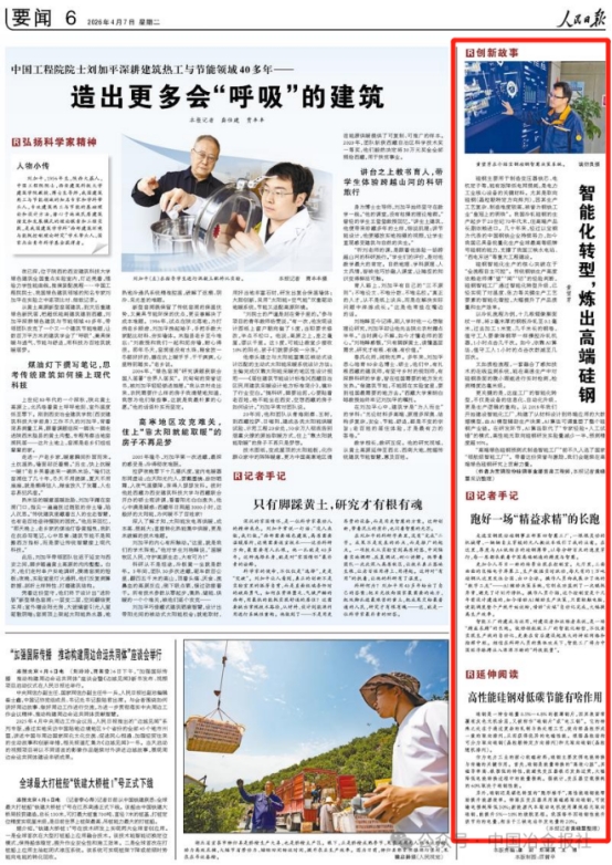 4月7日,《人民日报》6版发布《智能化转型,炼出高端硅钢》一文。
