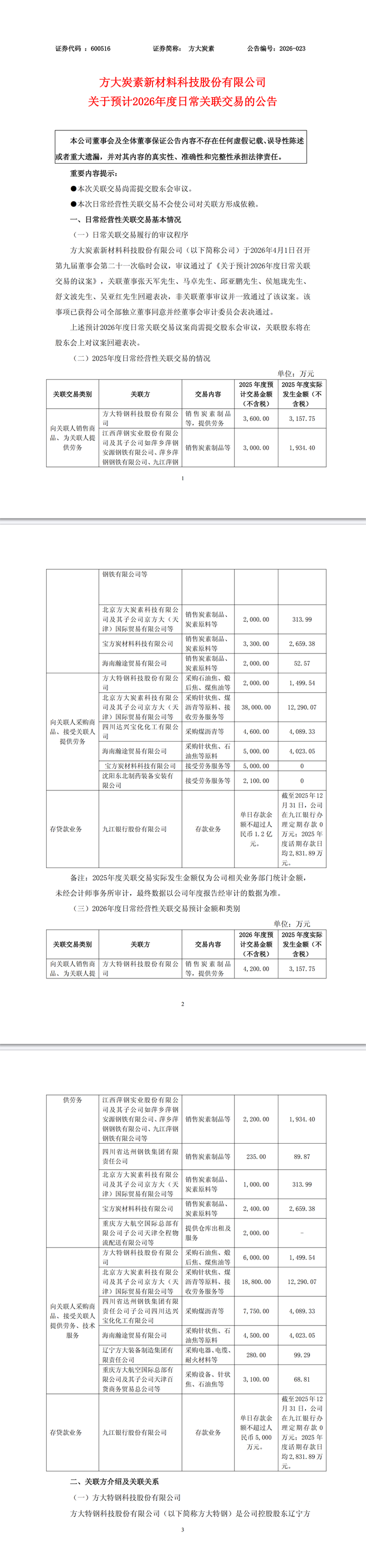 方大炭素:方大炭素关于预计2026年度日常关联交易的公告